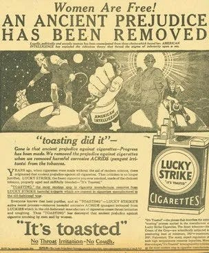 But the problem is that there are dark underbellies to both campaigns. Most obviously, smoking is harmful, and convincing women to smoke undoubtedly led to millions of cancer diagnoses and pulmonary issues throughout the following decades.